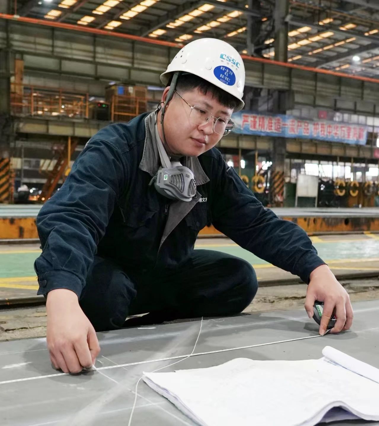 制造一部支持精控三班邱玉和他的同事們,就是這樣的一支團(tuán)隊(duì)。他們從鋼板下料切割開始,始終跟進(jìn)每一個(gè)生產(chǎn)環(huán)節(jié)的精度控制情況,隨時(shí)督促調(diào)整、修正,將船體各個(gè)結(jié)構(gòu)的定位基準(zhǔn)誤差控制在毫米級。