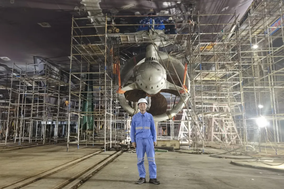 “機(jī)艙就像一個(gè)大號(hào)悶罐!”項(xiàng)目副經(jīng)理吳澤奇和工程師黃歡在廣州濕熱的天氣和機(jī)艙內(nèi)50℃以上的高溫中,連續(xù)通宵作戰(zhàn),在30天內(nèi)零差錯(cuò)完成伸縮推進(jìn)器的安裝后,又協(xié)調(diào)其他施工方序時(shí)推進(jìn)主推進(jìn)器安裝工作。
