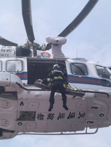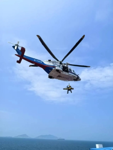 接報(bào)后,廣船國際立即啟動航空救援,第一時(shí)間聯(lián)系海上航空救助和最近的珠海醫(yī)院,一場生死競速在南海的碧海藍(lán)天間極速展開!在交通運(yùn)輸部南海第一救助飛行隊(duì)、珠海市中山大學(xué)附屬第五醫(yī)院和試航項(xiàng)目組的通力協(xié)作下,半小時(shí)后,藍(lán)白相間的救援直升機(jī)飛臨懸停試航船舶的直升機(jī)平臺。