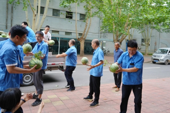 “這西瓜真新鮮!”“今年的西瓜肯定甜!”一個(gè)個(gè)滾圓的西瓜遞到職工們汗?jié)竦氖种?,大家邊卸西瓜邊聊天,現(xiàn)場(chǎng)傳來陣陣歡笑。此前,中船河柴已為一線職工發(fā)放綠豆、冰糖等防暑降溫用品,在生產(chǎn)現(xiàn)場(chǎng)安排專人熬煮綠豆湯,及時(shí)有效服務(wù)職工。接下來,中船河柴將結(jié)合天氣情況,動(dòng)態(tài)調(diào)整“送清涼”計(jì)劃,分批次發(fā)放防暑降溫物資,為夏季安全生產(chǎn)提供堅(jiān)強(qiáng)保障。