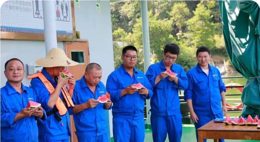 7月杭州的氣溫已經(jīng)逼近40℃,千島湖上更是熱浪灼人。試驗平臺的“燜爐”和“鐵板”上,不少項目組正在追趕進度,大家都是汗如雨下。七一五所黨委為奮戰(zhàn)在科研生產(chǎn)一線的員工送去防暑物資,傳遞對員工的關(guān)懷和鼓勵。