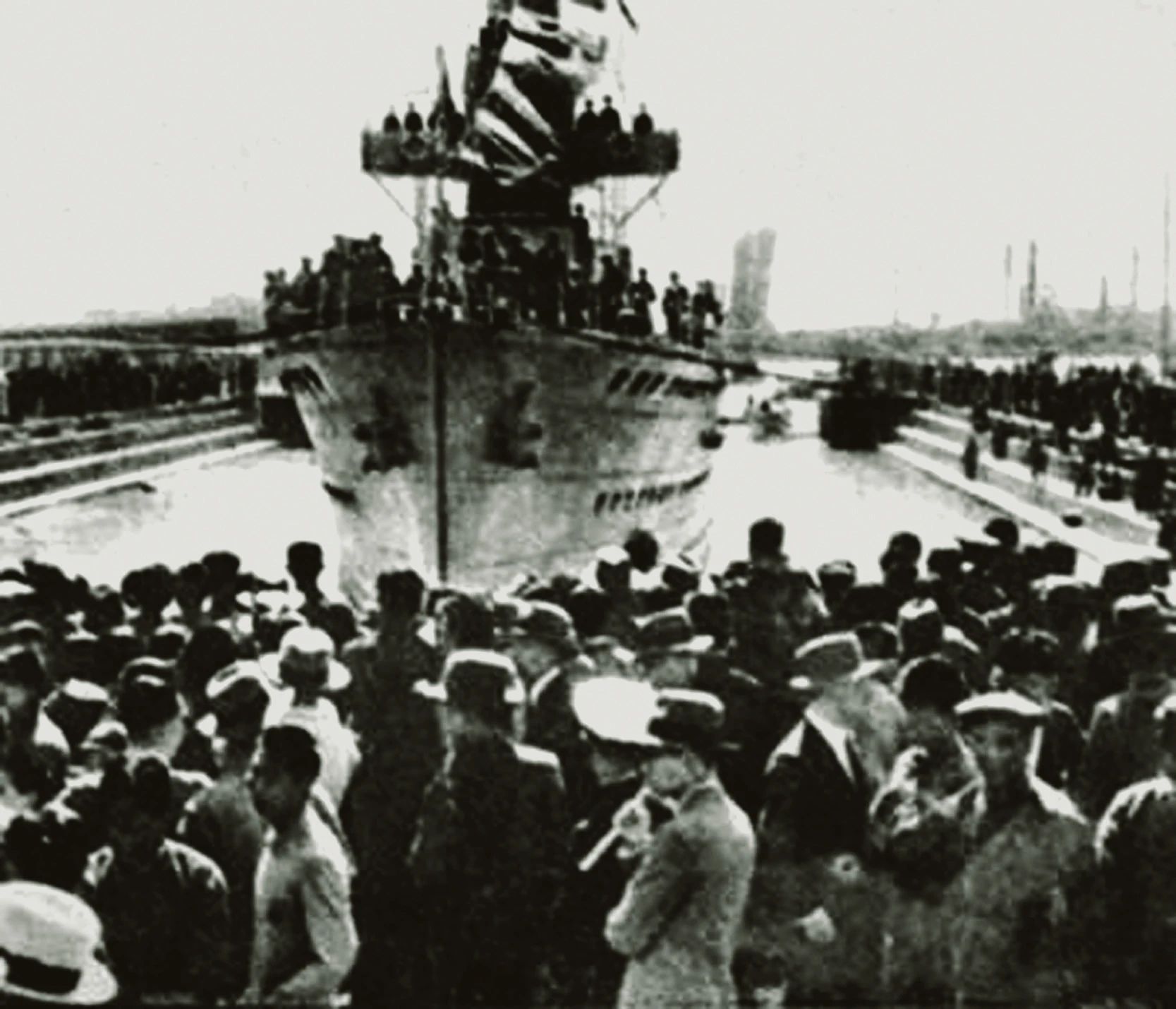 1928年8月16日午后,從上海老城廂西門通向江南造船的道路上,四處懸旗結彩。沿路張貼著“‘咸寧’下水是國民政府海軍的新建設”“鞏固海防、恢復海權”等標語。在江南造船廠區(qū)內臨江的一處船臺上,咸寧艦已經(jīng)完工,靜靜地等待著下水的莊嚴一刻。這是江南造船為南京國民政府定制的第一艘軍艦。