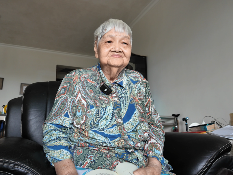 劉暉回憶道,1938年冬天,日軍入侵廣東東莞,她的父母不愿在日軍統(tǒng)治下生活,便帶著全家逃難至香港。1941年12月,日軍進攻香港,劉暉一家又隨著難民潮,沿著望不到頭的鐵路,徒步返回家鄉(xiāng)東莞。在顛沛流離中,她的父母相繼離世?!耙粋€好端端的家,就因為日本帝國主義的侵略,變得家破人亡。”她一字一頓,語氣沉重。