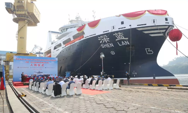 ????11月24日,青島海洋科學(xué)與技術(shù)試點(diǎn)國家海洋實(shí)驗(yàn)室(以下簡稱“海洋試點(diǎn)國家實(shí)驗(yàn)室”)在黃埔文沖船舶有限公司舉行了我國首艘漁業(yè)捕撈加工一體船“深藍(lán)號”入列國家海洋實(shí)驗(yàn)室遠(yuǎn)??茖W(xué)考察船隊(duì)儀式。
