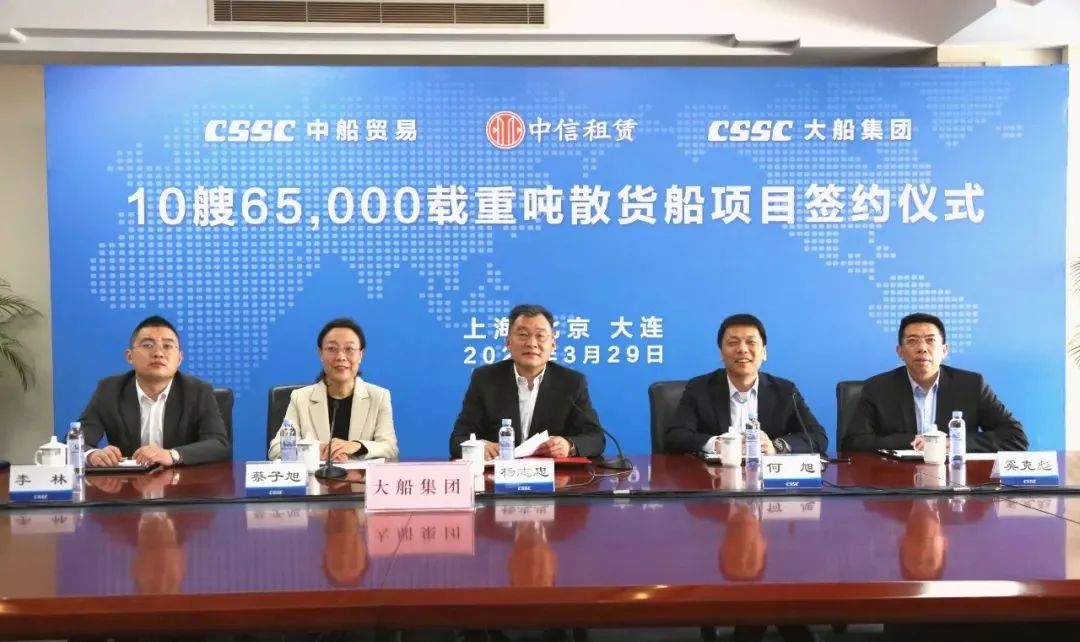 3月29日,中國船舶集團(tuán)旗下中船貿(mào)易聯(lián)合大船集團(tuán)與中信金融租賃有限公司以“云簽約”的形式正式簽署10艘6.5萬噸散貨船新造船合同。該批船舶完工交付后將租賃給國內(nèi)一流航運(yùn)公司,服務(wù)國家資源能源運(yùn)輸,主要運(yùn)營國內(nèi)沿海航線及長江沿線。