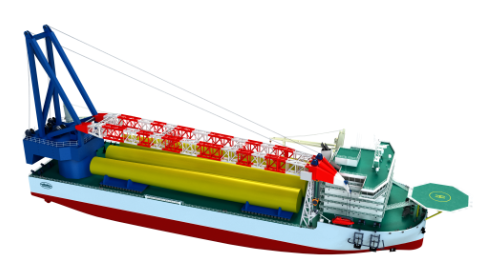 該船船長(zhǎng)186米,寬48米,型深16米,滿(mǎn)載排水量約90000余噸。起重機(jī)采用單舷側(cè)布置設(shè)計(jì),起吊高度可達(dá)主甲板以上145米,相當(dāng)于50層摩天大廈。還配備有DP2級(jí)動(dòng)力定位系統(tǒng),可實(shí)現(xiàn)深遠(yuǎn)??焖?、精確定位。能夠在海上風(fēng)電場(chǎng)進(jìn)行各項(xiàng)風(fēng)電工程作業(yè),主要包括10兆瓦及以下海上風(fēng)機(jī)的基座、支撐塔架、機(jī)艙及葉片的吊裝和風(fēng)機(jī)基礎(chǔ)等施工作業(yè),以及其他海上吊裝或支持作業(yè)。