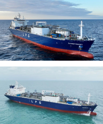 該型船總長(zhǎng)159.9米,型寬 25.6米,型深16.5米;船體內(nèi)布置三個(gè)設(shè)計(jì)溫度為-104℃的C型雙耳罐;入級(jí)英國(guó)勞氏船級(jí)社,由TGE提供液貨系統(tǒng),屬于江南造船“Camel 22E”精品船型?!癈amel 22E”是江南造船知名品牌“Lusitano”系列的優(yōu)化升級(jí)版船型,相較于原船型,“Camel 22E”減少了一個(gè)液罐但增加了1000立方米的貨物艙容,且在設(shè)計(jì)航速不變的情況下,油耗大幅降低。