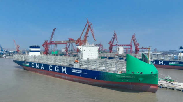 4月9日,中國船舶集團旗下七〇八所設計、滬東中華聯(lián)合中船貿(mào)易建造的新款清潔能源“海上綠巨人”13000TEU液化天然氣(LNG)雙燃料動力大型集裝箱船“CMA?CGM PARATY”號命名交付。