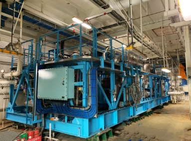 中國船舶集團(tuán)七一一所自主研制的該船液貨系統(tǒng)的核心設(shè)備—LNG深冷式再液化裝置,歷時3年的技術(shù)攻關(guān),突破多項(xiàng)關(guān)鍵技術(shù),成功開發(fā)了大功率磁懸浮壓縮/膨脹機(jī)組,實(shí)現(xiàn)零下175℃的高效大冷量輸出。