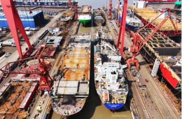 8月11日,中國船舶集團(tuán)旗下江南造船4號船塢迎來一艘99000立方米超大型乙烷乙烯運輸船(VLEC)和一艘7800車位汽車運輸船(PCTC)出塢 ,一艘99000立方米VLEC半船和一艘7800車位PCTC半船同步起浮,達(dá)成了“PV同步”建造模式的首批次出塢。