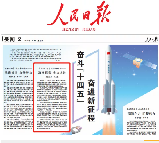 1月3日,人民日?qǐng)?bào)在要聞二版【奮斗“十四五” 奮進(jìn)新征程】專題報(bào)道中,以“海洋探索 全力以赴”為題刊發(fā)了對(duì)中國(guó)船舶集團(tuán)七〇二所副所長(zhǎng)“奮斗者”號(hào)總設(shè)計(jì)師葉聰?shù)膶TL。