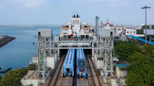 搭載2組復興號動車組過海的是“粵海鐵1號”“粵海鐵2號”火車渡船。這2艘船均由中國船舶集團旗下七〇八所設(shè)計、江南造船建造,其中,“粵海鐵1號”是我國第一艘自行設(shè)計、自行建造的跨?;疖嚩纱?,該船于2003年1月投入運營,結(jié)束了海南島與外省不通火車的歷史。