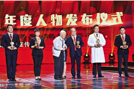 當(dāng)主持人念出“給‘人民英雄’張定宇頒獎(jiǎng)的是‘共和國(guó)勛章’獲得者黃旭華”時(shí),臺(tái)下爆發(fā)出熱烈的掌聲。