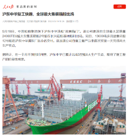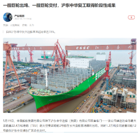 5月19日,中國船舶集團旗下滬東中華雙喜臨門。其建造的全球最大裝箱量24000TEU超大型集裝箱船2號船在長興造船基地順利出塢;建造的13000噸多用途重吊船12號船在浦東廠區(qū)命名交付,標志著該項目圓滿收官。這是滬東中華自復工復產以來首次實現一天完成兩大生產節(jié)點。