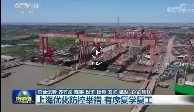 新聞聯(lián)播聚焦上海優(yōu)化防控舉措,加快推動復工復產(chǎn),點贊中國船舶集團旗下三大船企都實現(xiàn)復工復產(chǎn)。 | 來 源:集團公司黨群工作部 | 責 編:寧湘舒 | 校 對:王 琦 | 審 核:項 麗/甘豐錄