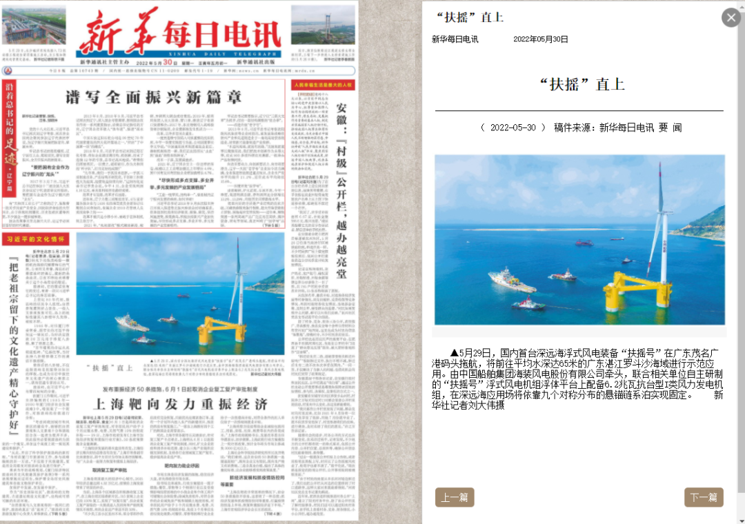 5月29日,中國船舶集團(tuán)旗下中國海裝牽頭研制的國內(nèi)首臺深遠(yuǎn)海浮式風(fēng)電裝備——“扶搖號”從廣東茂名碼頭起航,前往平均水深65米的廣東湛江附近海域投入示范應(yīng)用。