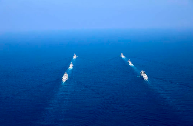 △今年2月,海軍第42批、第43批護航編隊在亞丁灣某海域舉行護航任務交接和分航儀式。