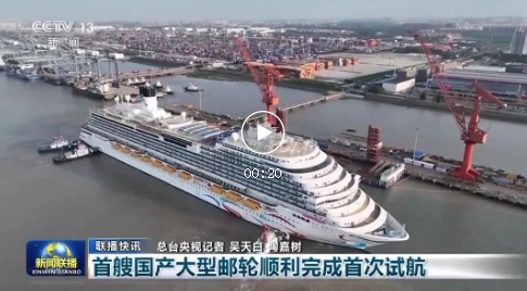 7月24日晚,首艘國產大型郵輪“愛達·魔都號”完成第一次試航所有試驗項目比原計劃提前一天凱旋,人民日報、新華社、中央電視臺等中央主流媒體進行了報道。