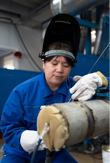 至今,朱瑞霞已經(jīng)參與了“遠望”系列船、“雪龍2”號、南昌艦等國家重點項目的焊接工作。她說,當(dāng)時有人高度評價稱:“你焊的管子可以免檢?!钡珘毫σ搽S之而來,“我當(dāng)時就想,船一出海就是半年,我的焊接要是出問題,就是人命關(guān)天。”正是因為這種“軸”,朱瑞霞先后攻克了鎳銅管焊接變形、HDR不銹鋼焊接、鈦合金焊接等一系列高難度問題。她主導(dǎo)研發(fā)了十余項焊接專利技術(shù),攻克了薄壁管道焊接難題,還創(chuàng)新研制了特有的工裝,獲得外國專家的認可和推廣應(yīng)用。