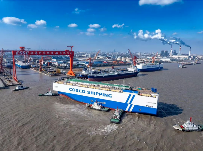 2月8日,中船集團旗下外高橋造船一號船塢傳來喜訊。為希臘Oceangold公司建造的首制11.4萬噸阿芙拉型成品油船和為中信金融租賃公司建造的第二艘8600車滾裝汽車運輸船(PCTC)提前2天實現(xiàn)出塢節(jié)點。
