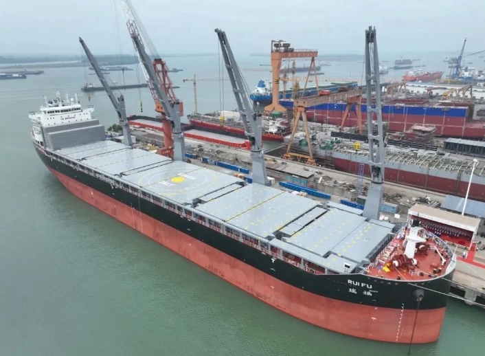 “瑞福”號是同型船的第10艘,具有裝載重大件設(shè)備貨和集裝箱式貨物的能力,首航將裝載風(fēng)電設(shè)備等貨物,并投入南非航線。